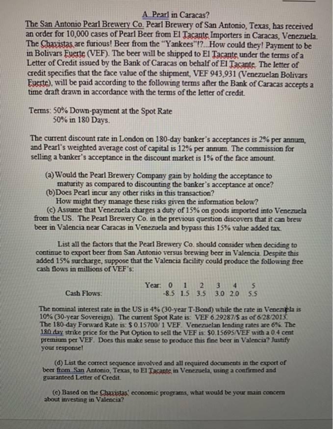 Solved A Pearl In Caracas The San Antonio Pearl Brewery Co Chegg Com